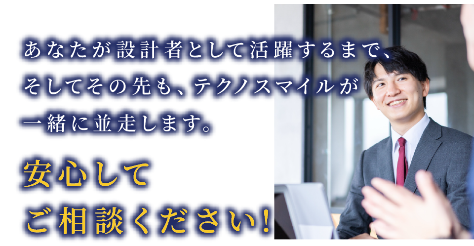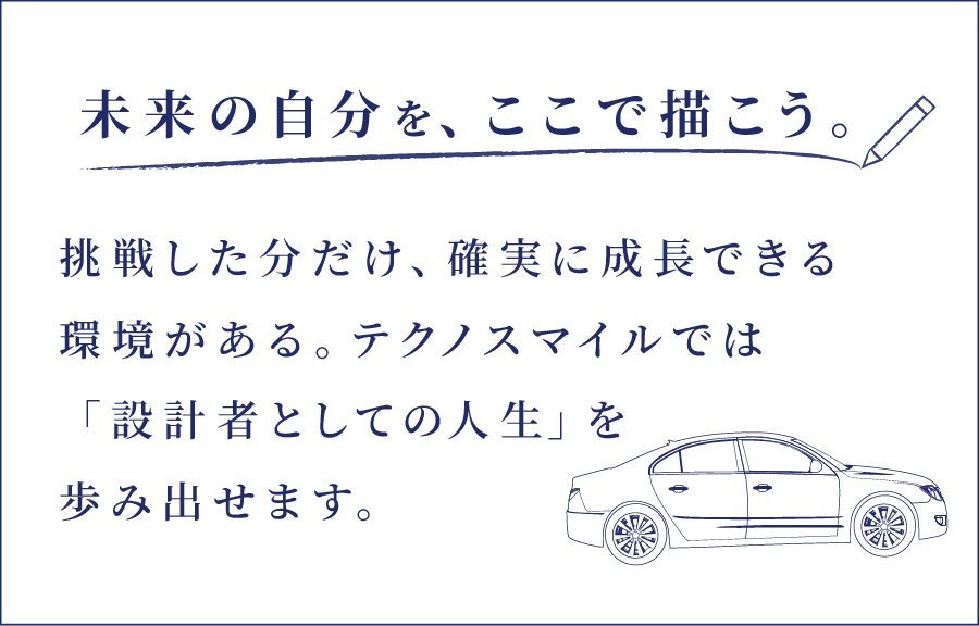 上場企業としての安定した経営基盤と、グループ事業テクノスマイルテクノロジーズ(TSTEC)との連携により、「設計・開発の一員」として活躍できる環境を実現します。