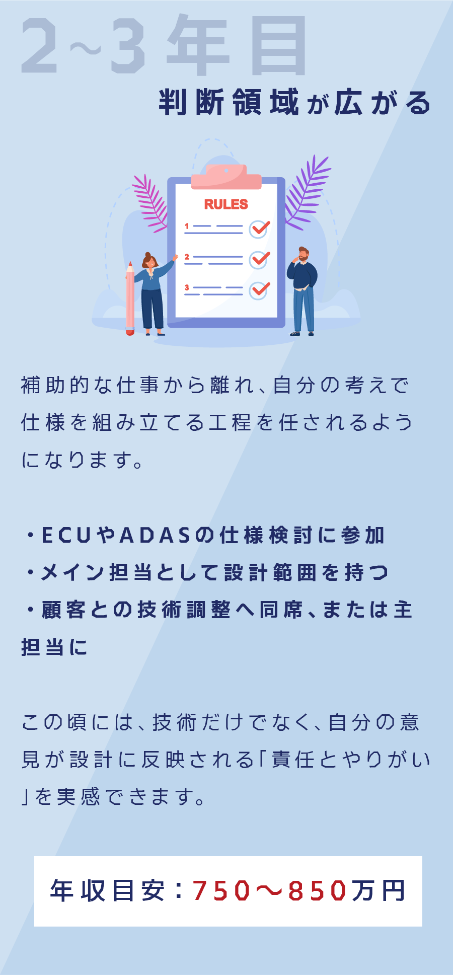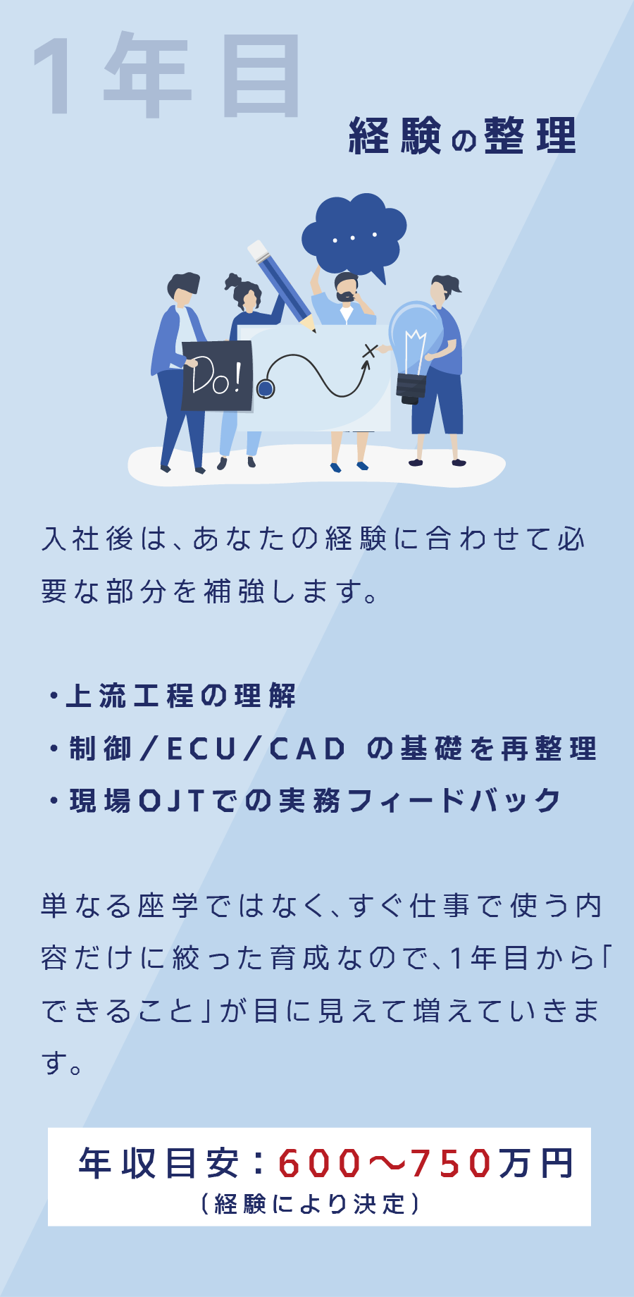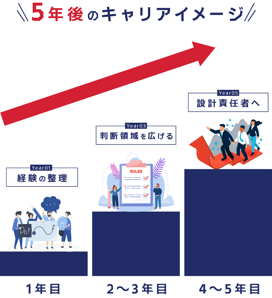 今は指示を受けて図面や仕様を仕上げているあなたが、数年後には 判断し、決め、リードする立場へ進んでいく未来を想像してみてください。
