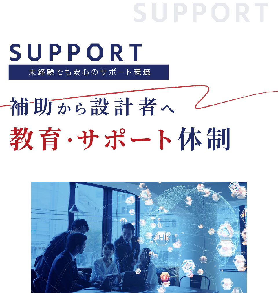 大手メーカーの開発チームの中核メンバーとして、研修・実務経験・キャリア支援のすべてを受けながら成長できます。