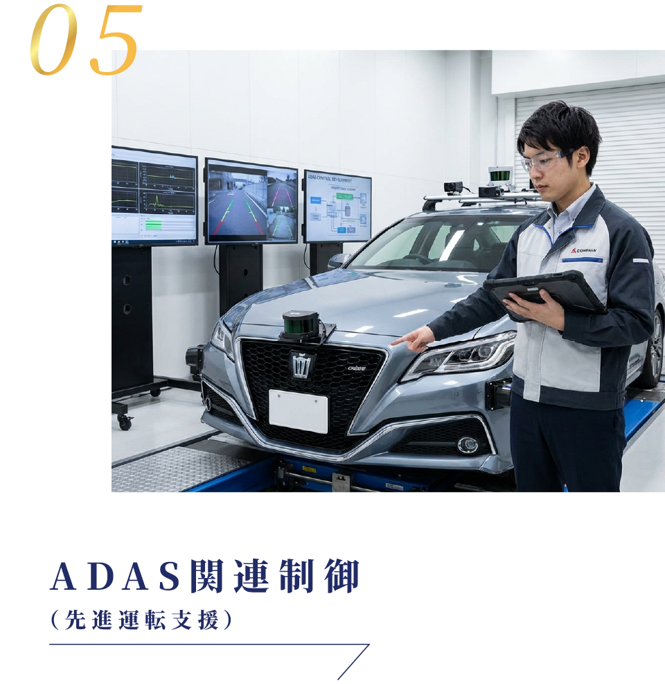 自動ブレーキや車線維持支援など、先進運転支援機能の制御仕様設計。